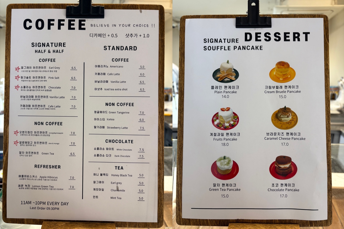 다 먹어보고 싶었지만..... 배가 부른 관계로 플레인 수플레와 음료만 주문!!!