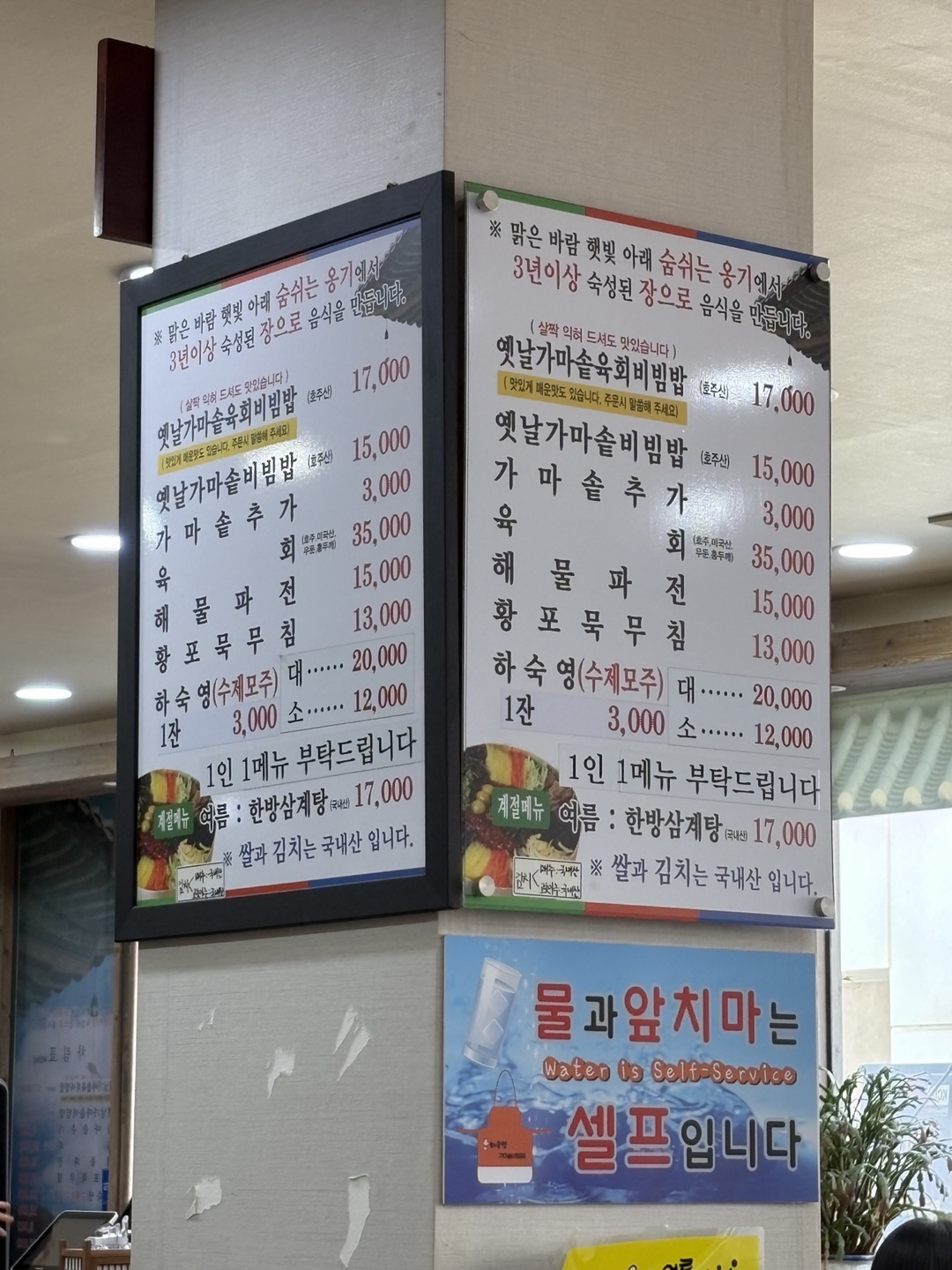 우리는 옛날가마솥육회비빔밥 & 해물파전 & 하숙영(수제모주) 주문했는데 사람이 많아서 그랬는지......