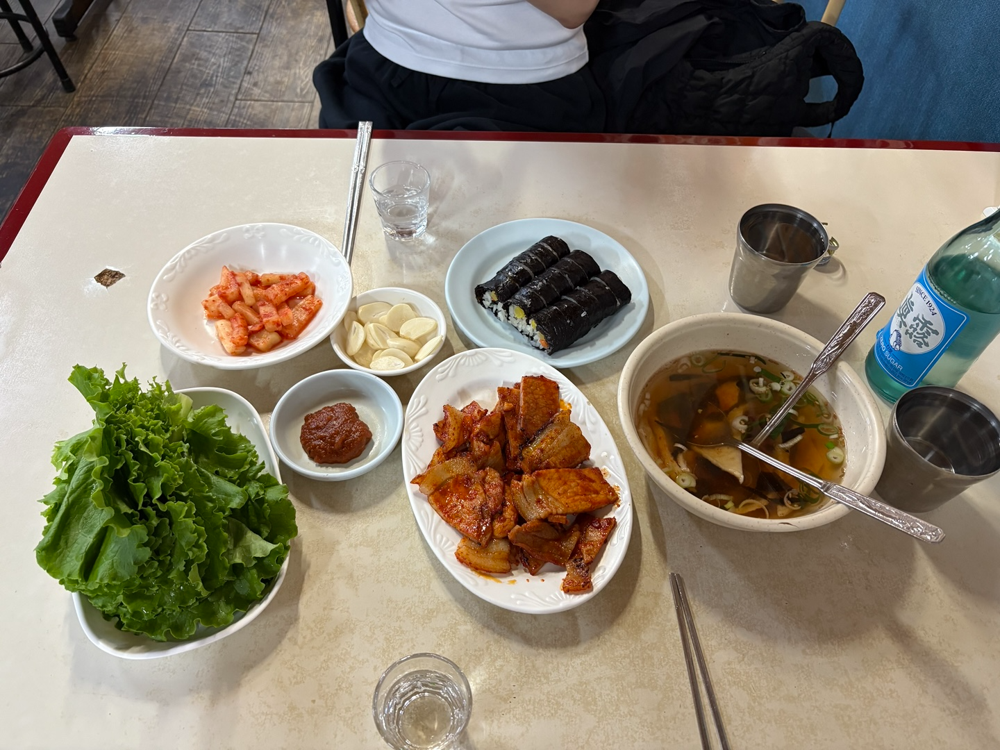 상추에 연탄돼지불고기랑 김밥을 싸먹는다고???